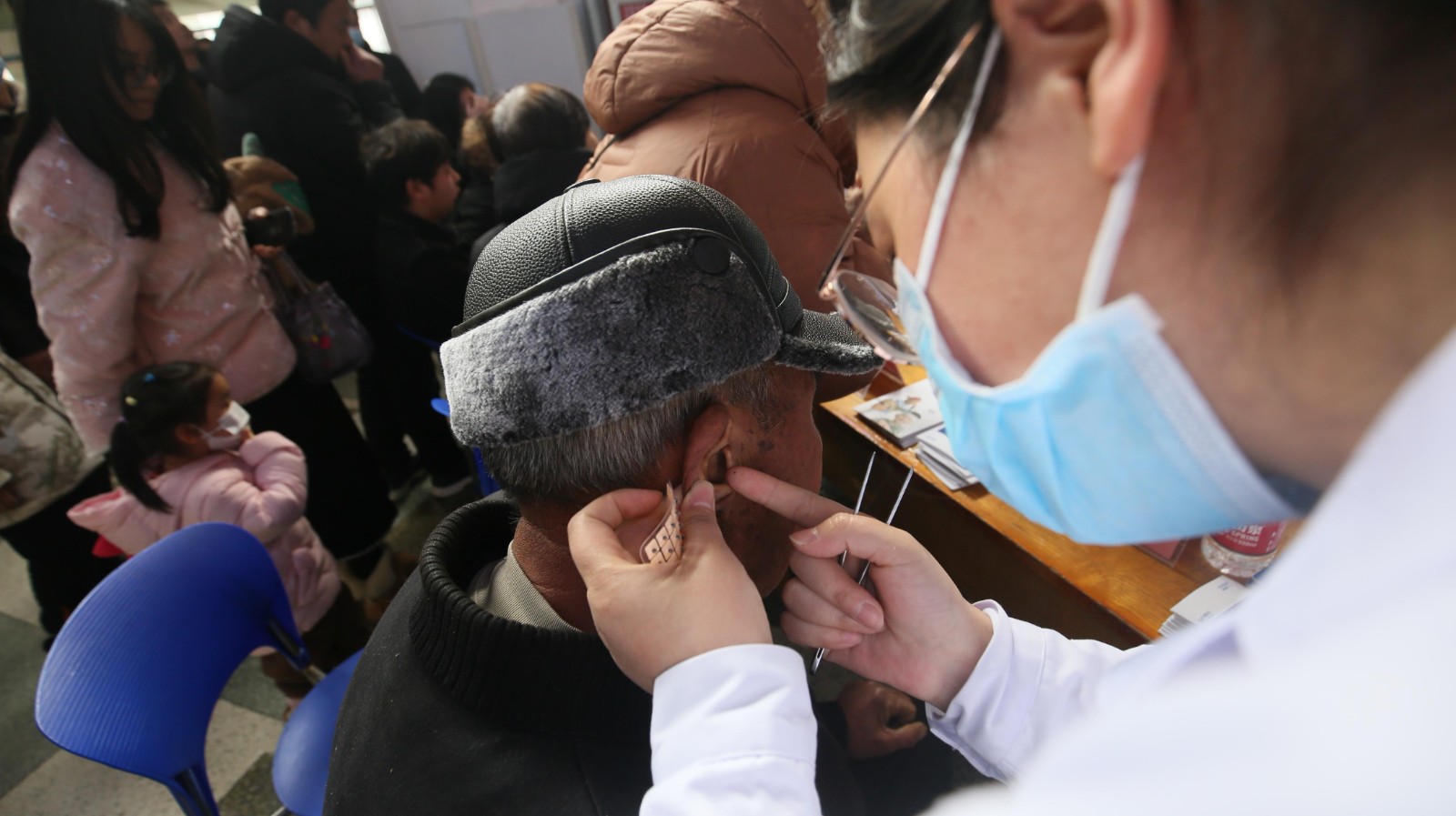 值得一提的是義診現(xiàn)場還進(jìn)行了免費(fèi)的中醫(yī)耳穴敷貼治療服務(wù)。《靈樞》有云:“耳者,宗脈之所聚也。”中醫(yī)認(rèn)為,聽覺器官,是清陽之氣上通之處,屬清竅之一。人的五臟六腑可在耳廓上找到相應(yīng)穴區(qū)出現(xiàn)反應(yīng),刺激耳穴,可以起到防病治病的作用,對失眠、耳鳴、耳聾人群有較好的治療效果。