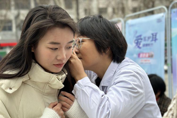 副主任魏璐璐醫(yī)師為患者檢查耳部情況