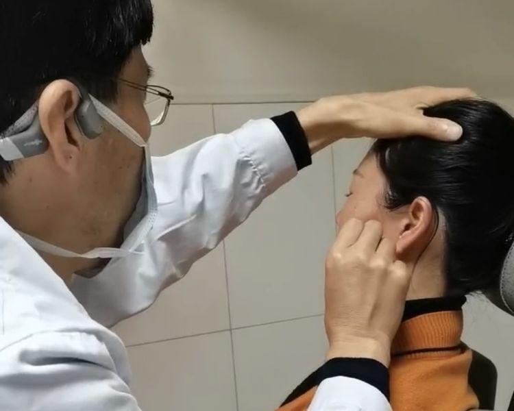 副主任楊琛醫(yī)師為患者檢查耳部情況
